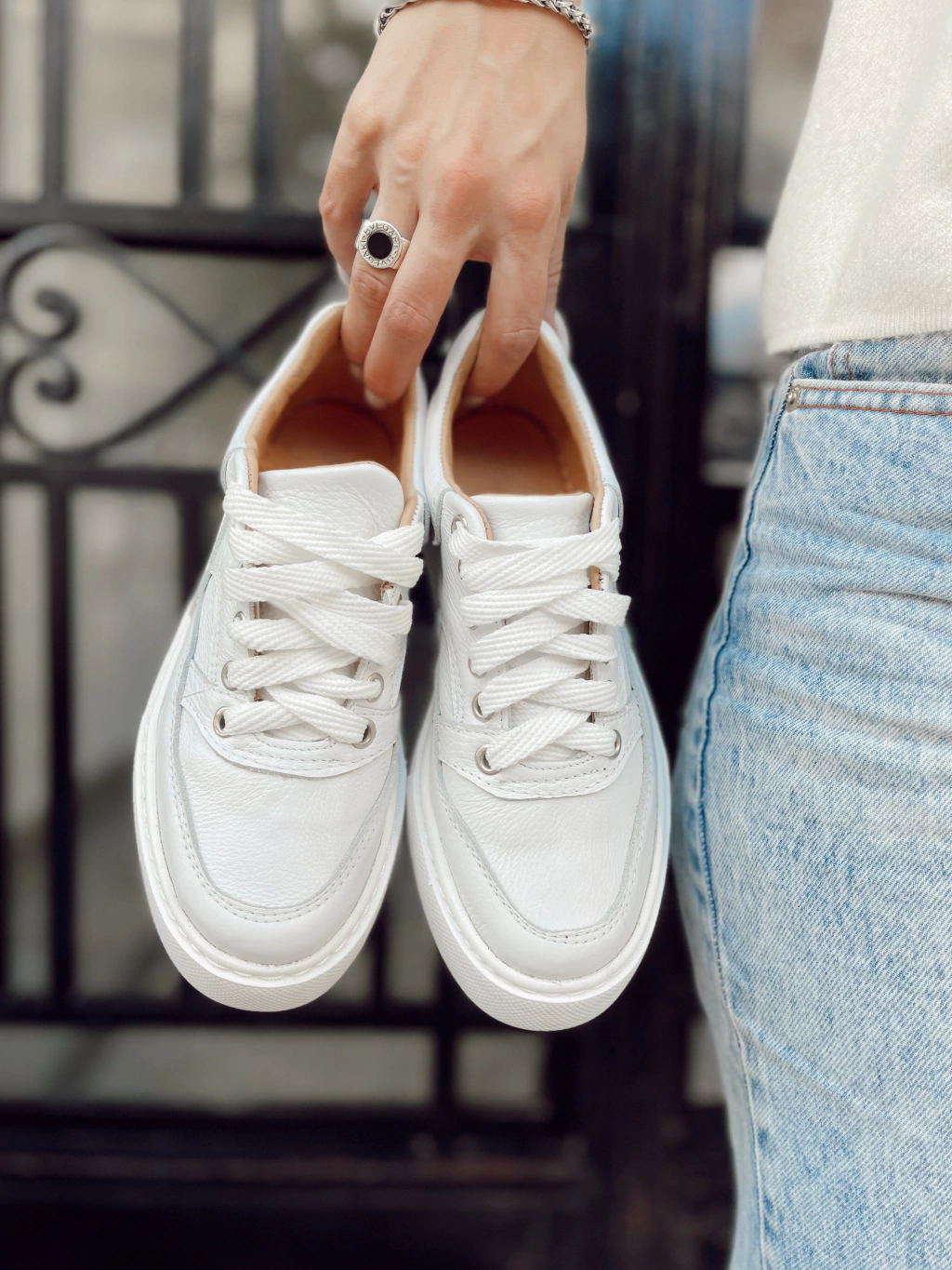 Zapatillas de cuero blanco con forreria de cuero y base de eva inyectada, pegada y cosida. No resbala